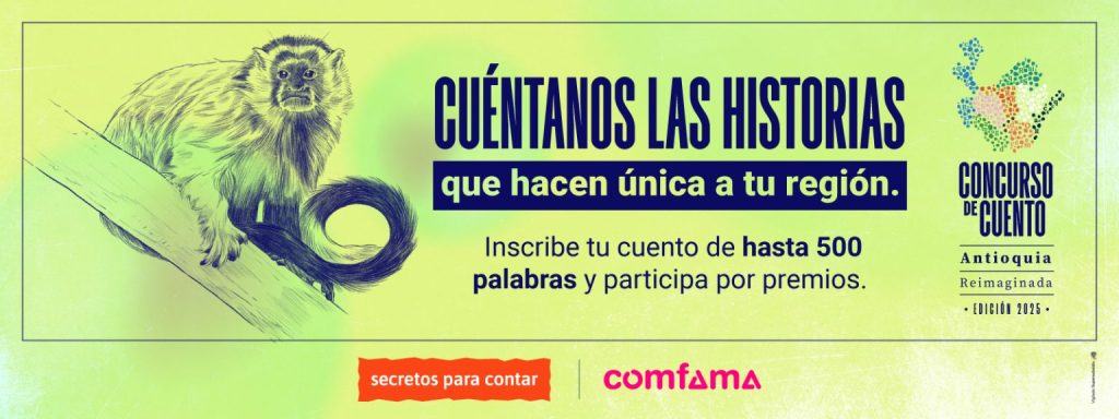 Desde el año 2023 nos unimos a Comfama como aliados en el concurso de cuento Antioquia Reimaginada. Este concurso busca abrir un espacio para que las voces de niños, niñas, jóvenes y adultos se expresen a través de relatos que muestran la riqueza cultural, natural, étnica y patrimonial de nuestro departamento.