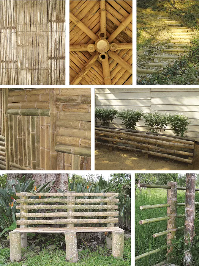 Con varias guaduas enteras y otras partidas a la mitad, se puede construir fácilmente una banca para el exterior de la casa, y crear un lugar de tertulia o descanso en medio del jardín o de la huerta.