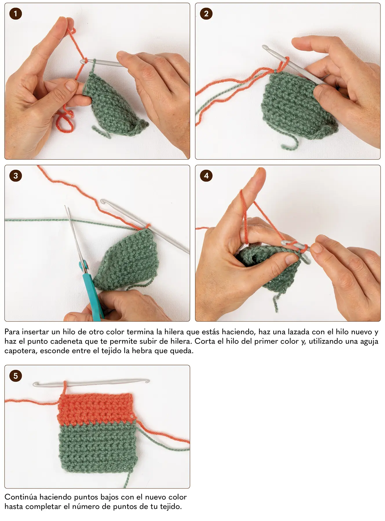Se teje de derecha a izquierda. Cuando termines una hilera, voltea tu tejido y continúa con la siguiente.