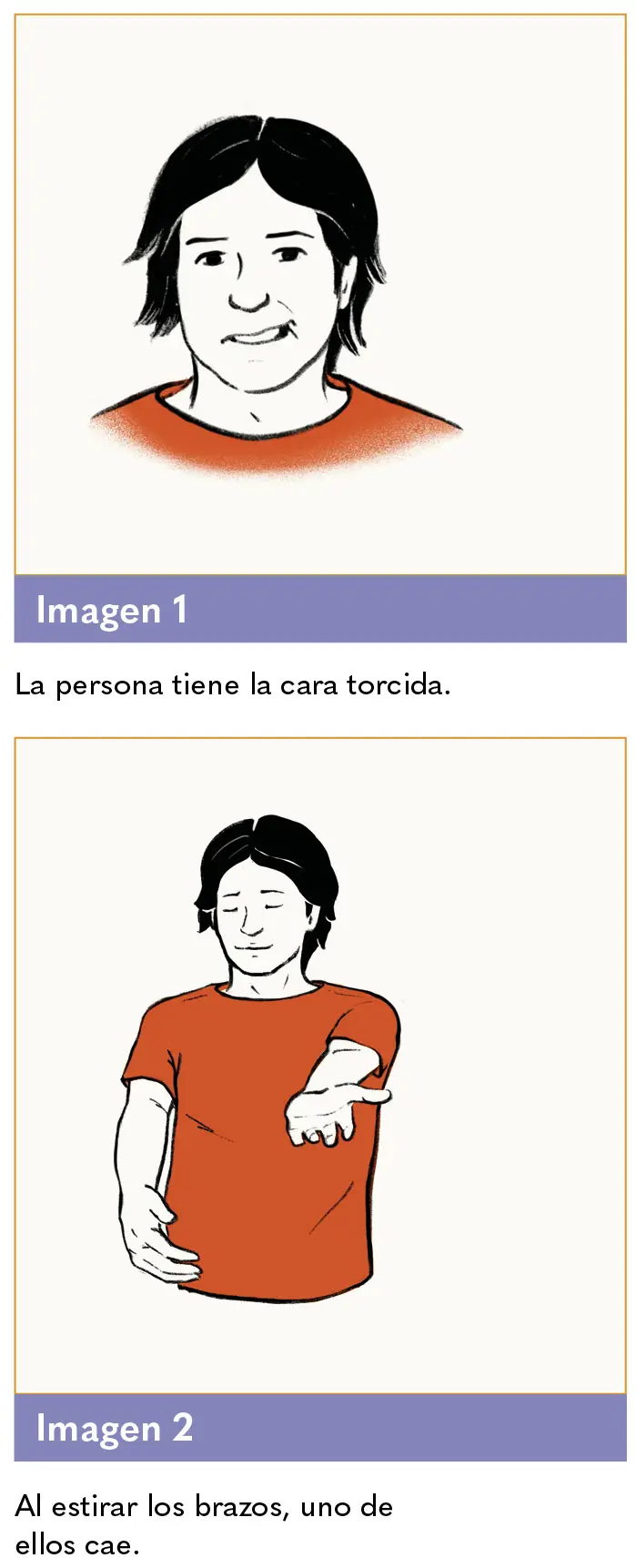 Estamos ante un accidente cerebrovascular (ACV), algo muy grave; el paciente debe ser llevado inmediatamente a urgencias (mientras más rápido lo llevemos, menores serán los daños cerebrales), mientras vigilamos que no tenga problemas para respirar; así que es mejor que vaya semisentado y que le hablemos para tranquilizarlo.