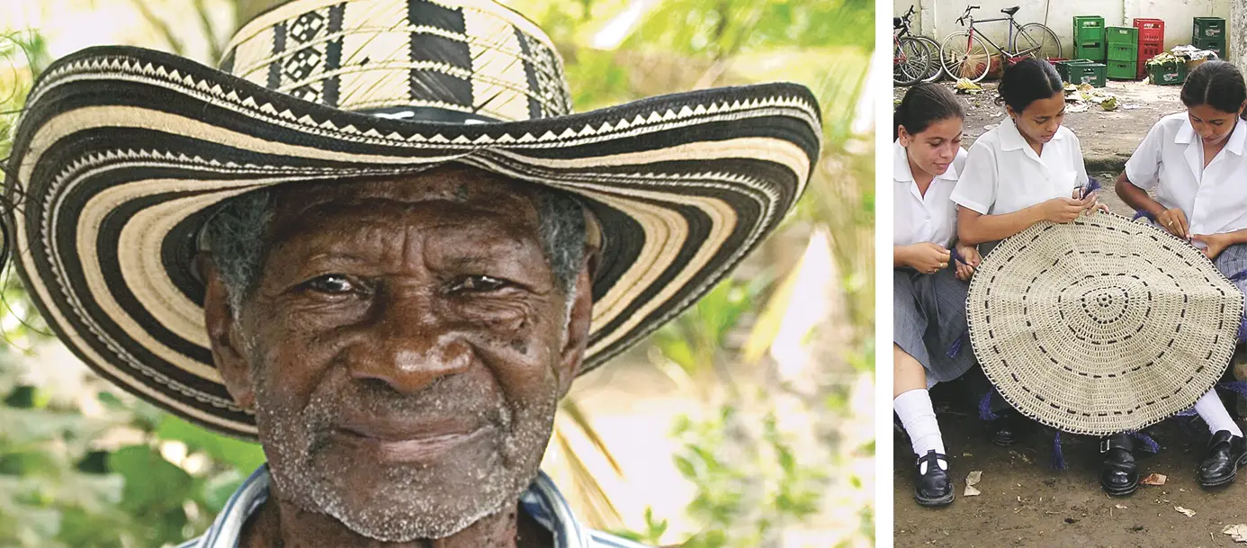 El sombrero ‘vueltiao’ es patrimonio nacional. Es tejido en caña flecha por artesanos de San Andrés de Sotavento y Tuchín. Antes se cosían las tiras tejidas a mano, con aguja e hilo de maguey. Hoy se hace en máquinas de coser sencillas.