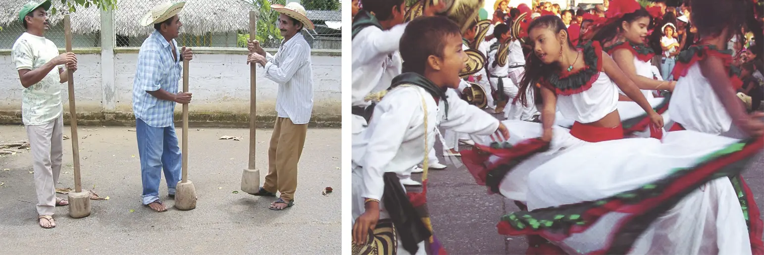 “Como ahora estamos poquitos, el que canta también lleva pisón”, explica Marcial Cadavid, el director del grupo. Él marca el ritmo con el pisón macho. A lado y lado van los pisones hembras. El macho puede hacer lo que sea: uno, dos, tres golpes, seguidos o distanciados. Las hembras lo siguen. “El que no sabe este secreto va ‘a traspingas’ –dando tumbos sin ritmo–”, dice Marcial, que vive en Severá, corregimiento de Cereté, en la margen izquierda del río Sinú.