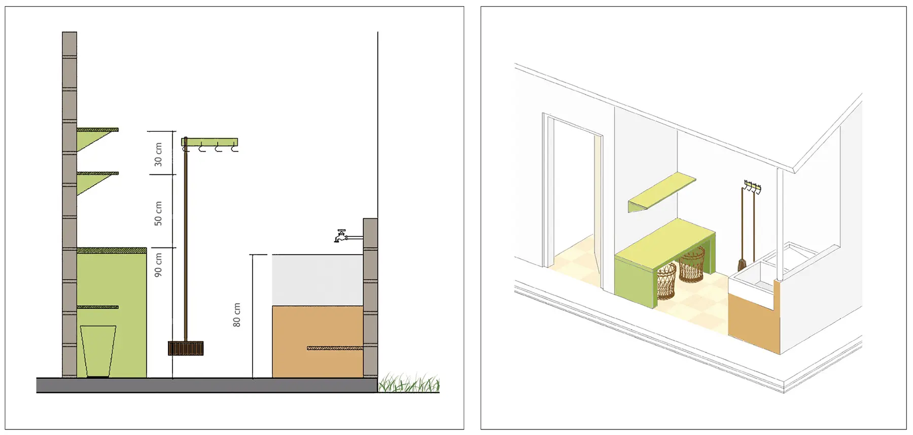 El lavadero es una zona de uso diario en el trabajo de la casa, y mantenerlo organizado ayuda a mejorar la apariencia general de la vivienda. Cerca al lavadero debe estar el tendedero de ropa.