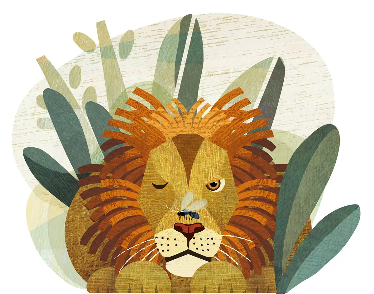 —Mosquito, me parece que eres demasiado pequeño para desafiarme en combate —contestó el león sin hacerle demasiado caso al molesto insecto.
