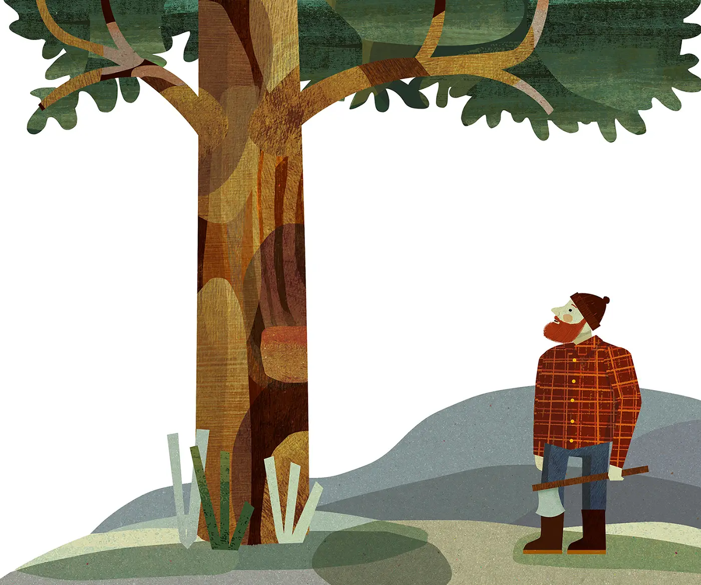 Una mañana se acercó a un majestuoso roble que se erguía en la mitad del bosque con la intención de tumbarlo. Afiló su hacha, y ya estaba a punto de dar el primer golpe cuando oyó una voz que salía de adentro del árbol: