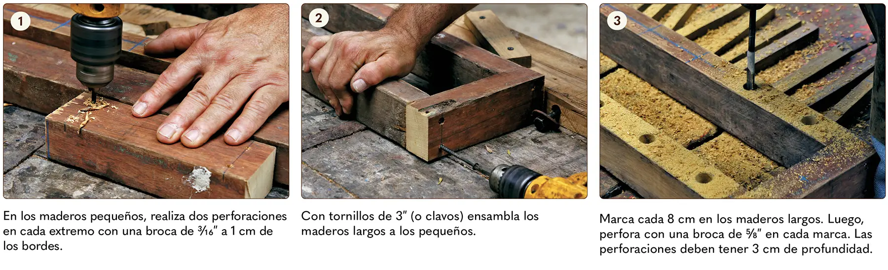 Puedes pegar una cinta en la broca que te sirva de guía para que las perforaciones queden a la misma profundidad.