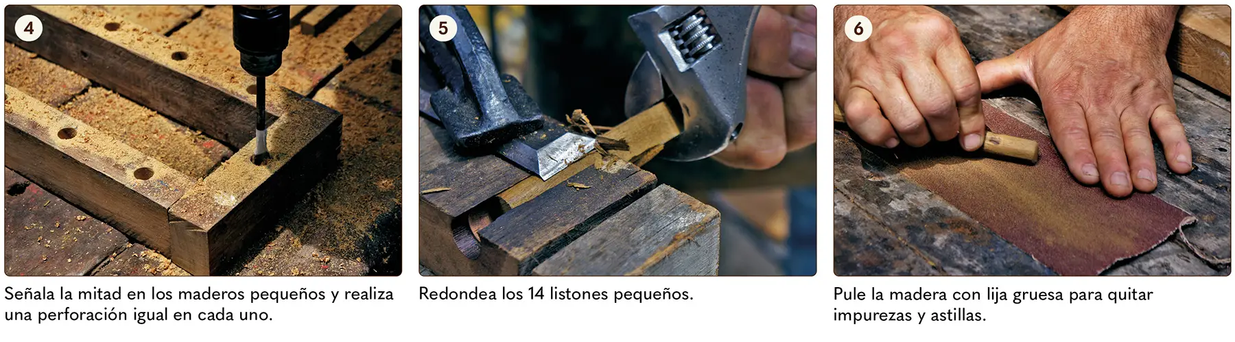 · 16 listones de 15 cm de largo y al menos 2 cm de ancho y 2 cm de espesor