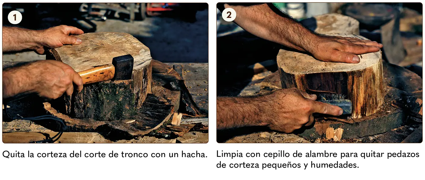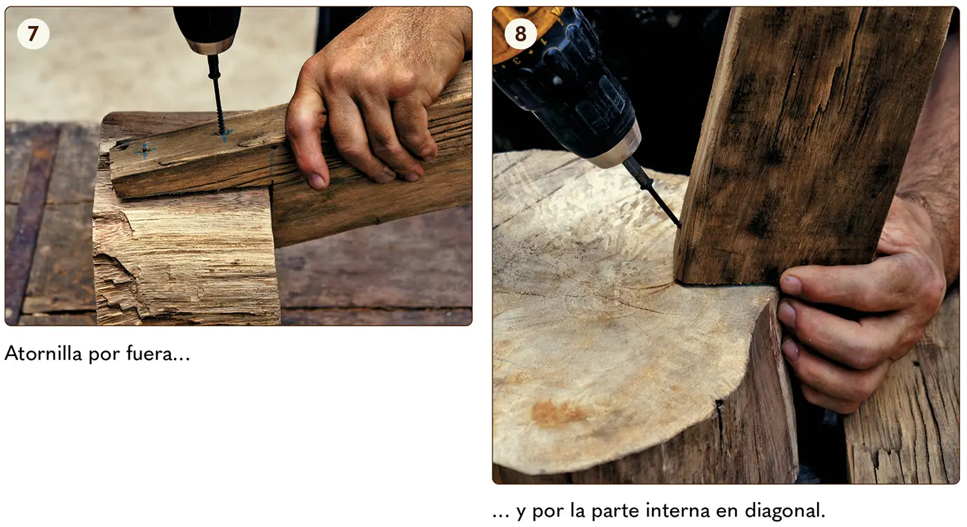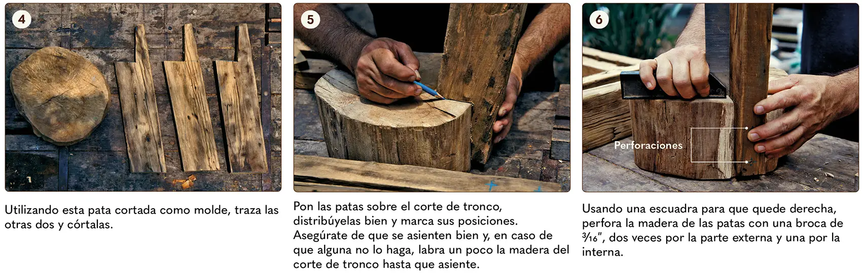 3 maderos gruesos de 42 cm de largo, 10 cm de ancho y 4 cm de espesor