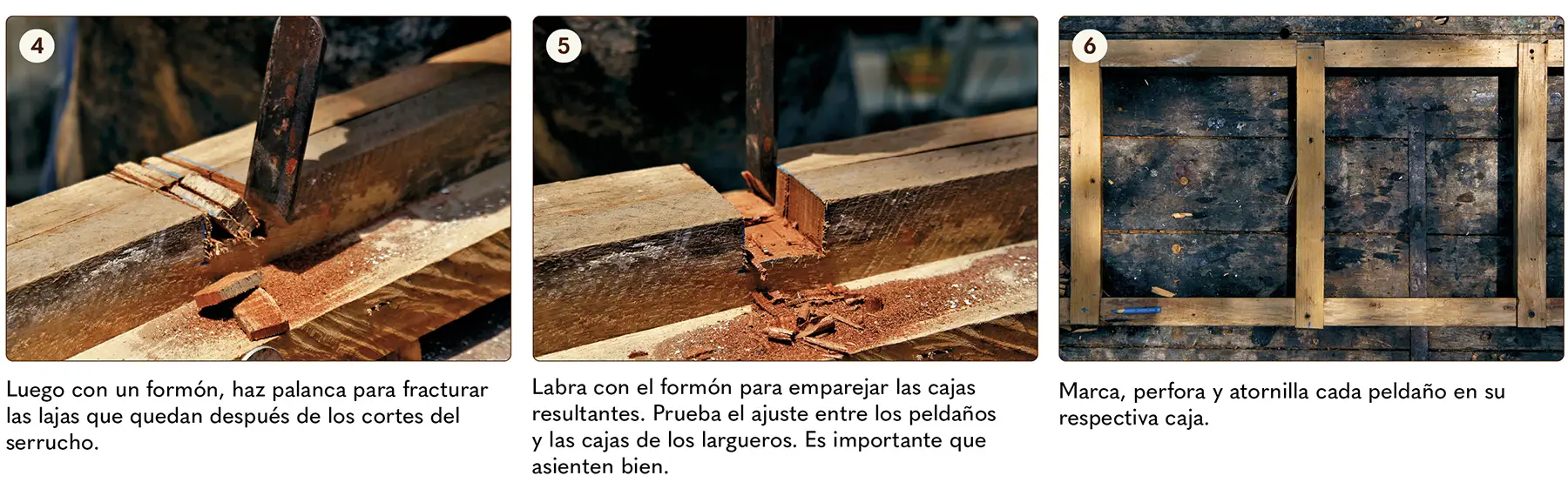 Materiales y herramientas· 2 maderos de 210 cm de largo (o según la necesidad o disponibilidad), 6 cm de ancho y 4 cm de espesor (largueros)