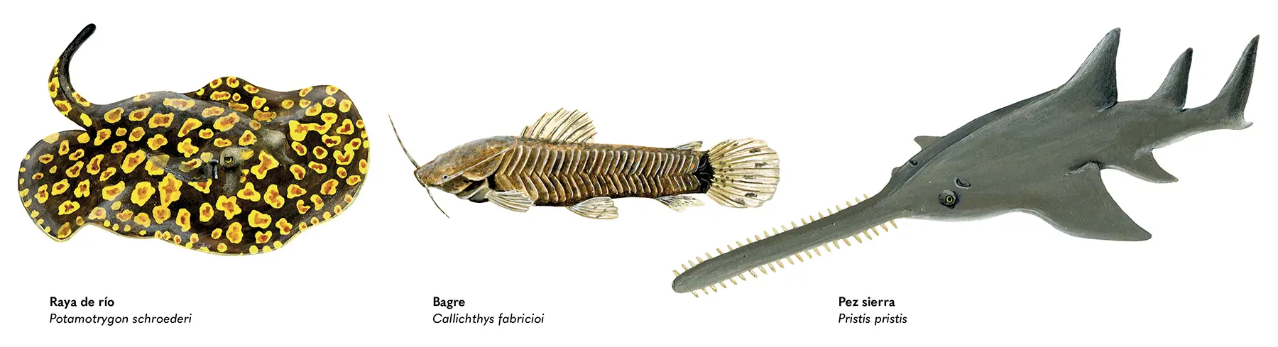 Los peces óseos de aletas radiales tienen esqueletos formados por hueso. Estos últimos son el grupo más grande, con unas 31 800 especies. Entre los grupos con mayor diversidad están los siluriformes, donde se encuentran los bagres, seguido de los characiformes, en el que están las pirañas, el bocachico y las sabaletas.