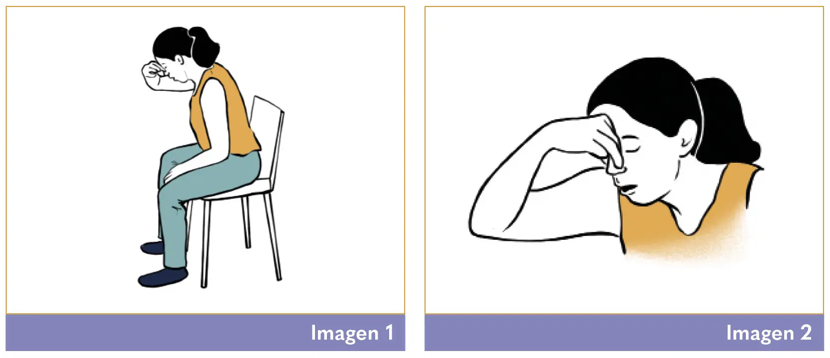 2. Cerramos ambas fosas nasales con los dedos por 15 minutos (no retiremos la mano). (Imagen 2)