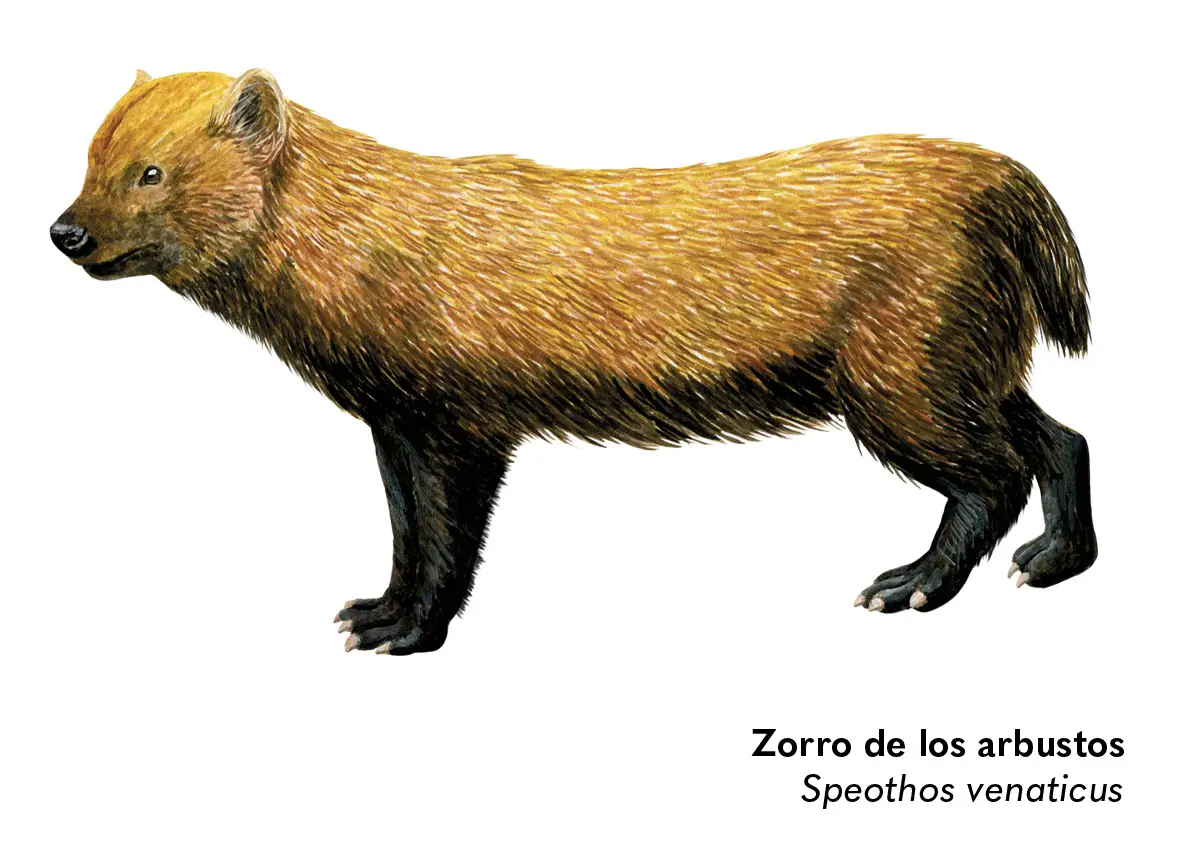 En el mundo existen 39 especies de cánidos, representados por perros, lobos y zorros. En Colombia tenemos cinco especies de zorros nativos, siendo el más común el zorro perro (Cerdocyon thous), que habita en diversos tipos de bosque e incluso en áreas urbanas. Menos conocido es el zorro de los arbustos o perro venadero (Speothos venaticus), que, con membranas entre los dedos de sus patas, es un excelente nadador. Este pequeño y extraño zorro vive en grupos familiares liderados por una pareja dominante, que es la única que se aparea. Los zorros de esta especie marcan territorio de una manera única: la hembra levanta las dos patas traseras para orinar en un árbol.