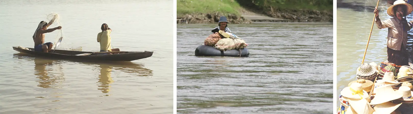 Los habitantes de las orillas de los ríos viven de la pesca, de la agricultura, de la minería y del comercio.
