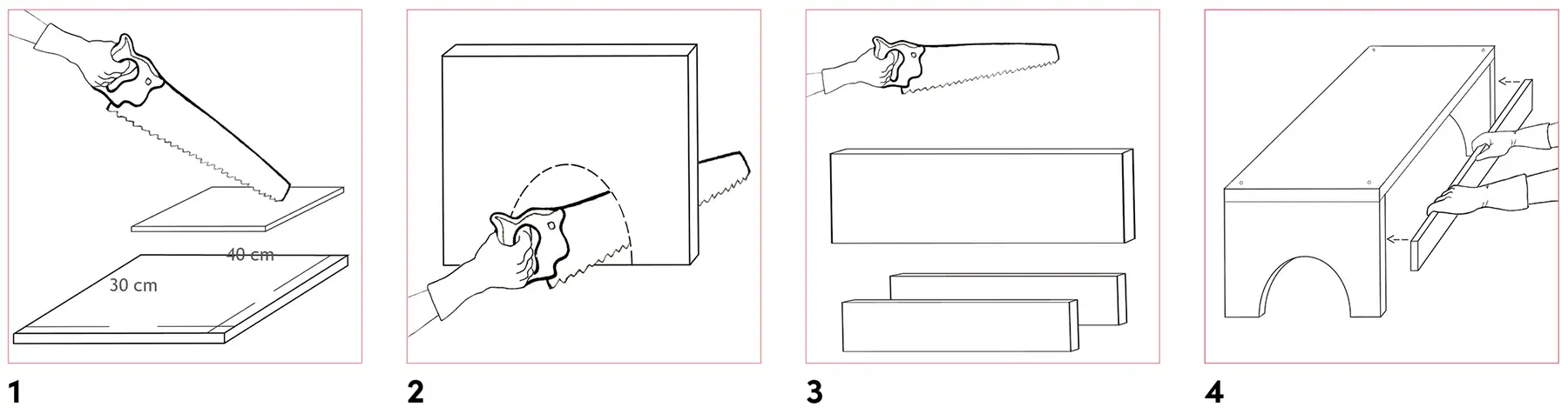 1. Corte dos trozos de madera de 40 centímetros de alto y 30 centímetros de ancho.