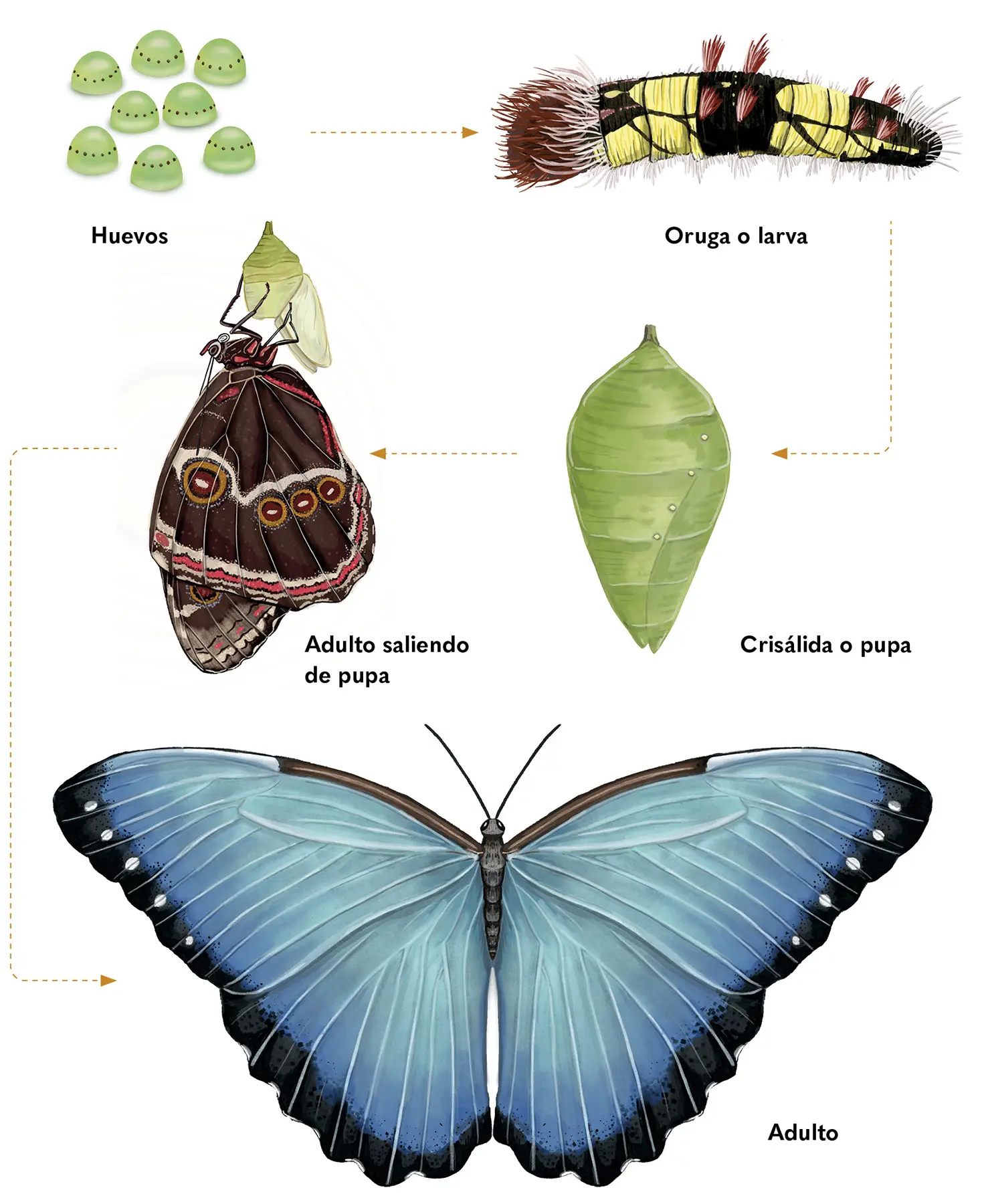 La mayoría de los insectos cambian de forma después de que salen del huevo, y mudan su exoesqueleto para poder crecer y cada vez que pasan de un estado a otro. Este proceso se conoce como metamorfosis, y existen varios tipos: