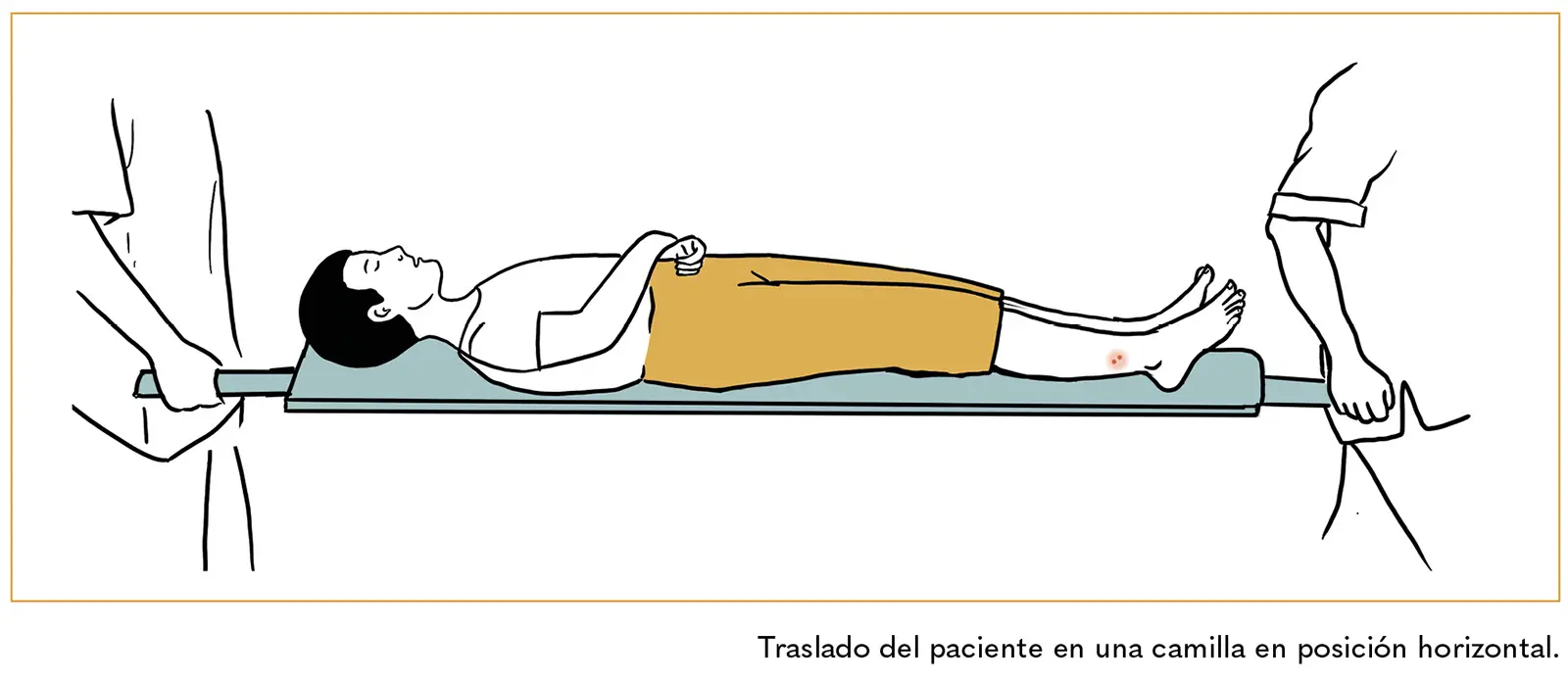 4. Debemos llevar al paciente rápidamente a urgencias para que le apliquen el suero antiofídico. Para hacerlo, recostémoslo en posición horizontal o construyamos una camilla para transportarlo.