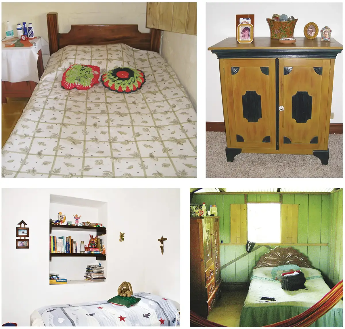 La cama es el mueble del descanso. Hay muchas formas de hacerla: con ladrillo, madera o guadua como estructura para el colchón. El espacio debajo de la cama puede usarse con cajones para guardar ropa.