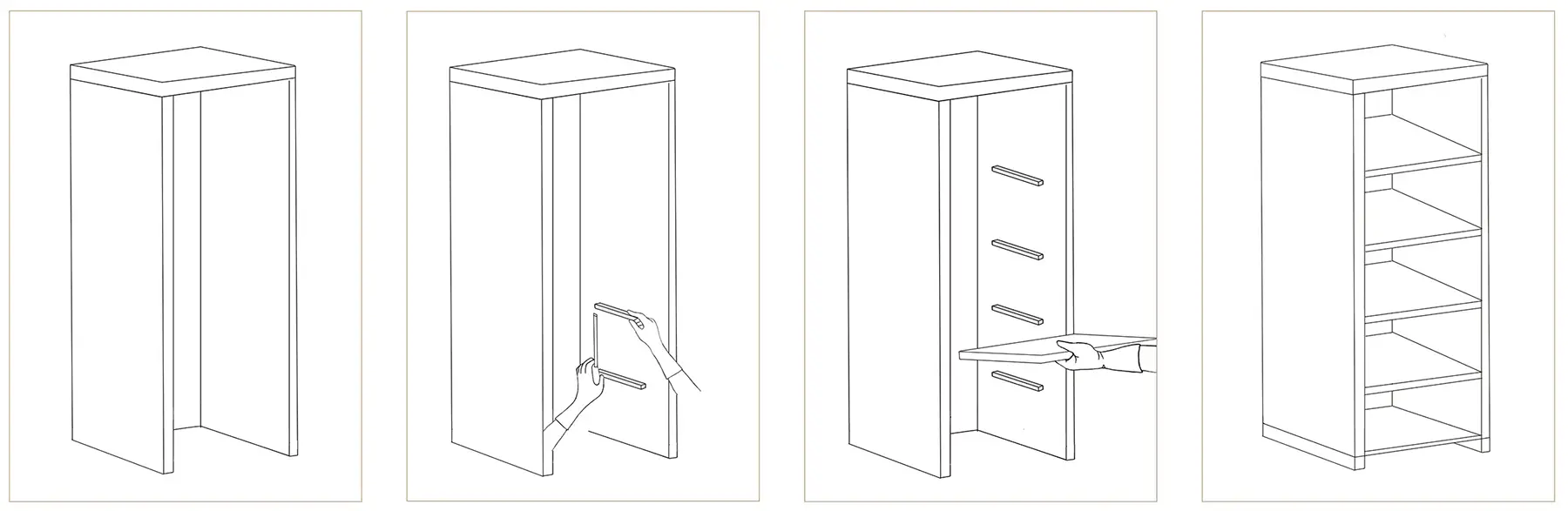 Con cajas de plástico o cartón sobre una base de madera se arma un armario para guardar ropa o juguetes. Las cajas pequeñas sirven para guardar camisas, ropa interior o papeles, y se pueden poner en las repisas.