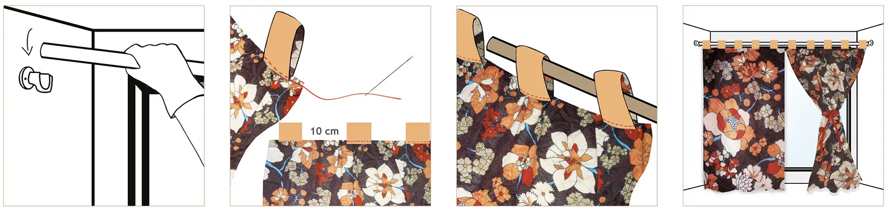 2. En el lado superior de la cortina, cada 10 centímetros haga una argolla con la misma tela.