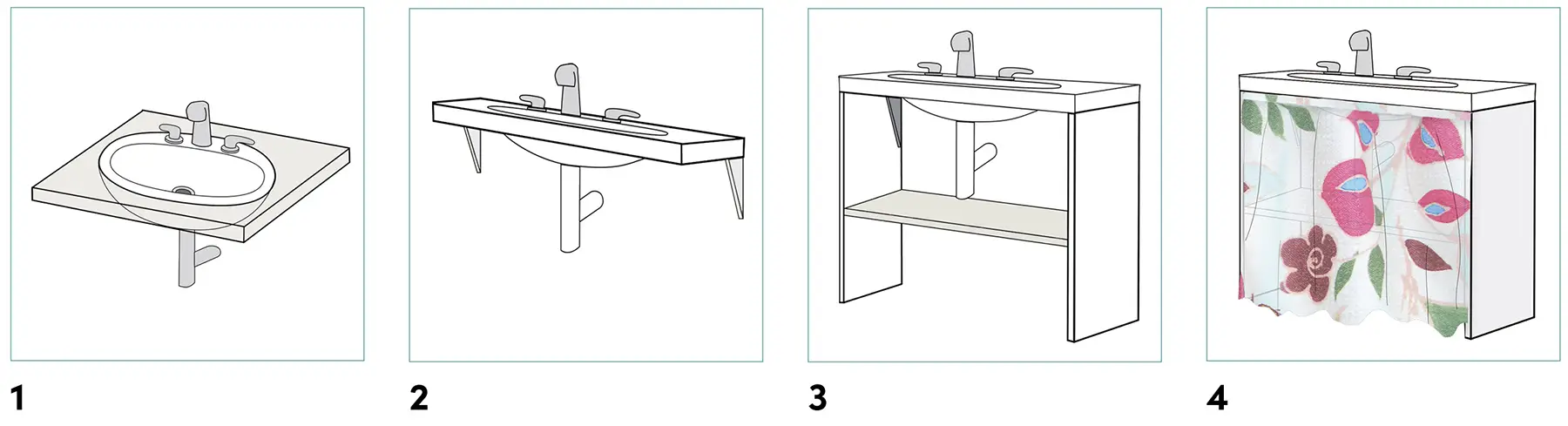 Muchas veces es útil contar con un espacio para guardar toallas e implementos de aseo. Si se tiene un lavamanos estándar, colgado a la pared, es posible hacer un mueble debajo, lo que genera un lugar limpio y seguro como guardadero.