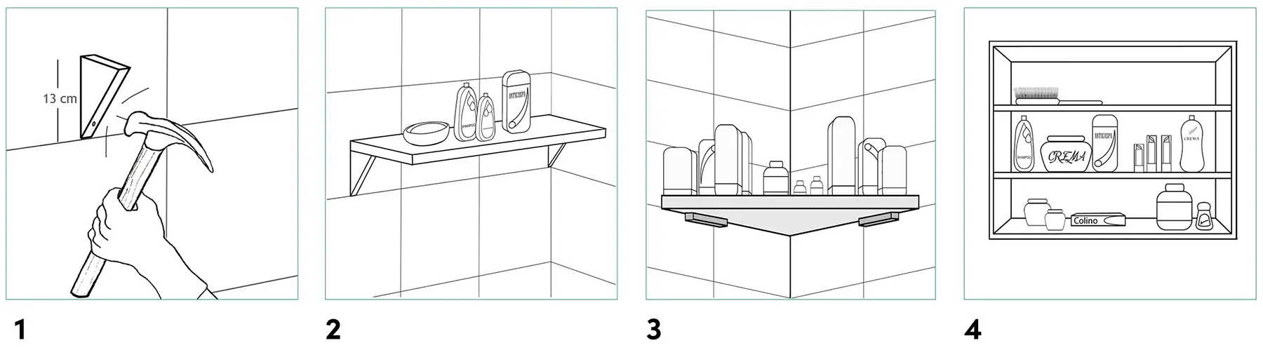 4. Cuelgue un estante con entrepaños, es muy práctico.