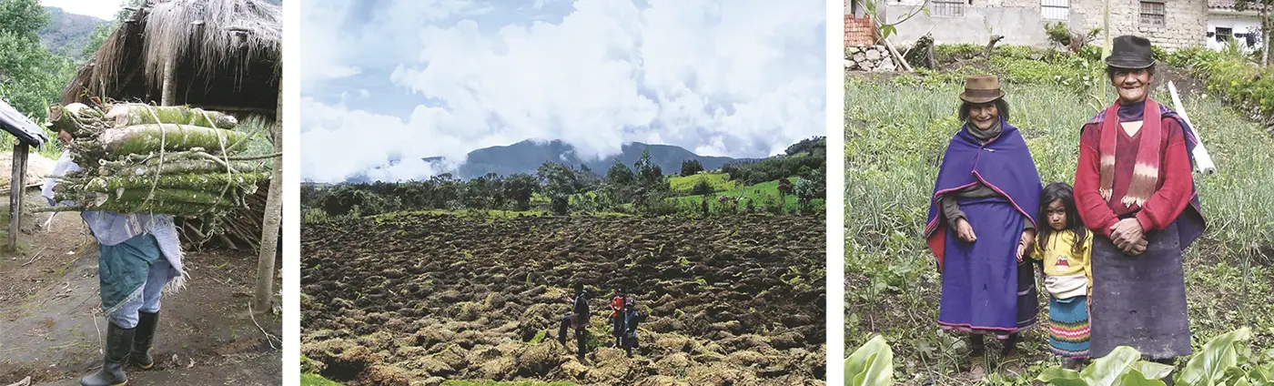 Siembran en pequeñas parcelas y en la tul, “hablando en castellano, una huertica”, donde crecen cebollas, habas, coles, zanahorias, “la cosa más necesaria allí al pie de la casa”. Los cultivos son asociados. Donde hay maíz, por ejemplo, siempre hay fríjol, arracacha o habas. Es creencia de muchas zonas andinas: “una planta le ayuda a la otra; el fríjol ayuda a cargar el maíz, por los nutrientes que suelta y el maíz, a cambio, le da sombra”.