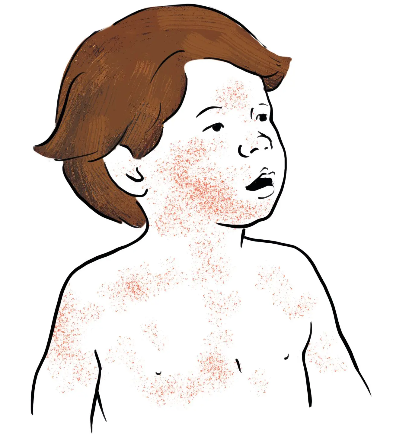Tratamiento de los síntomas como fiebre y malestar, además de aislamiento (consulta el artículo Fiebre en los niños). Además, debemos aislar al niño de personas en riesgo, especialmente de mujeres embarazadas.